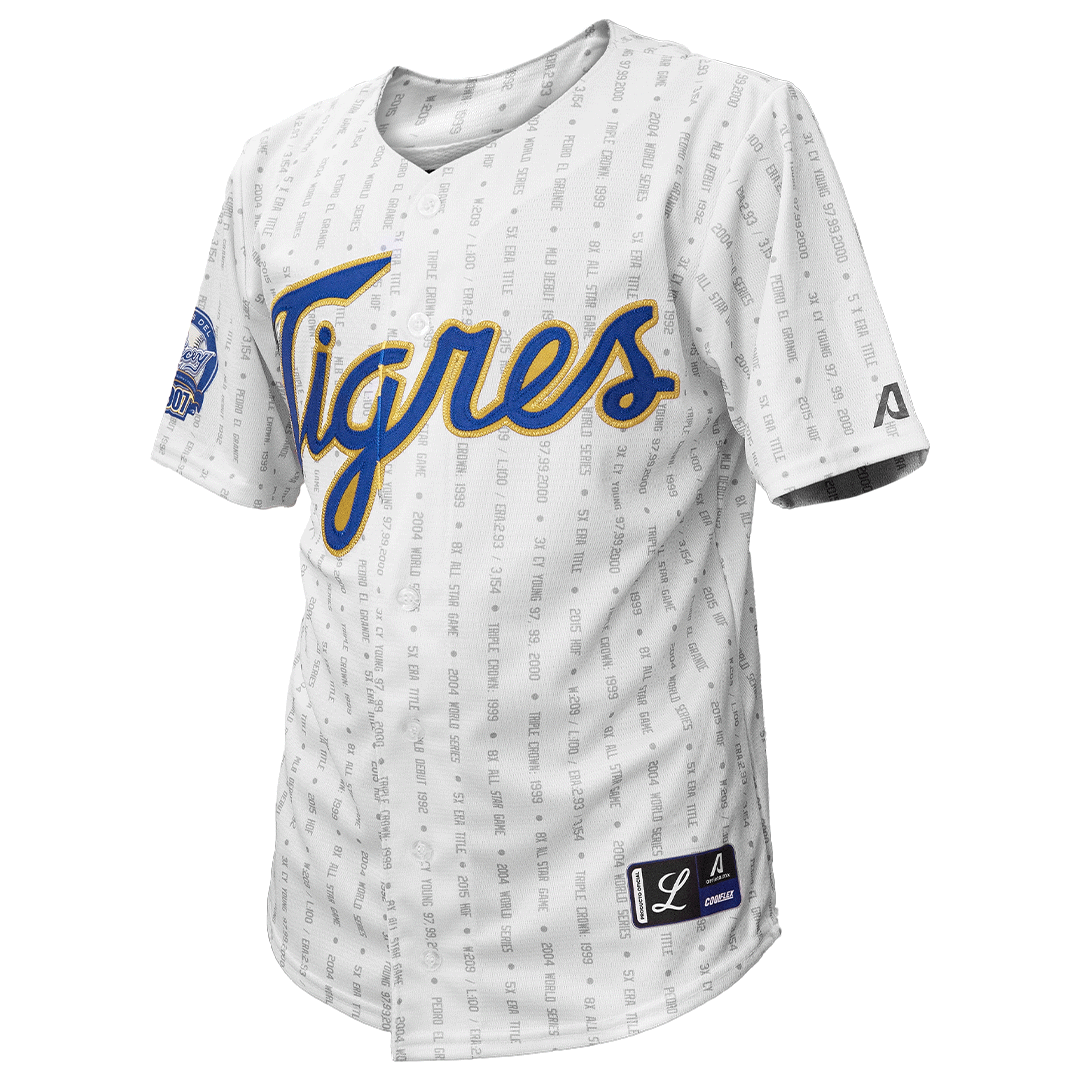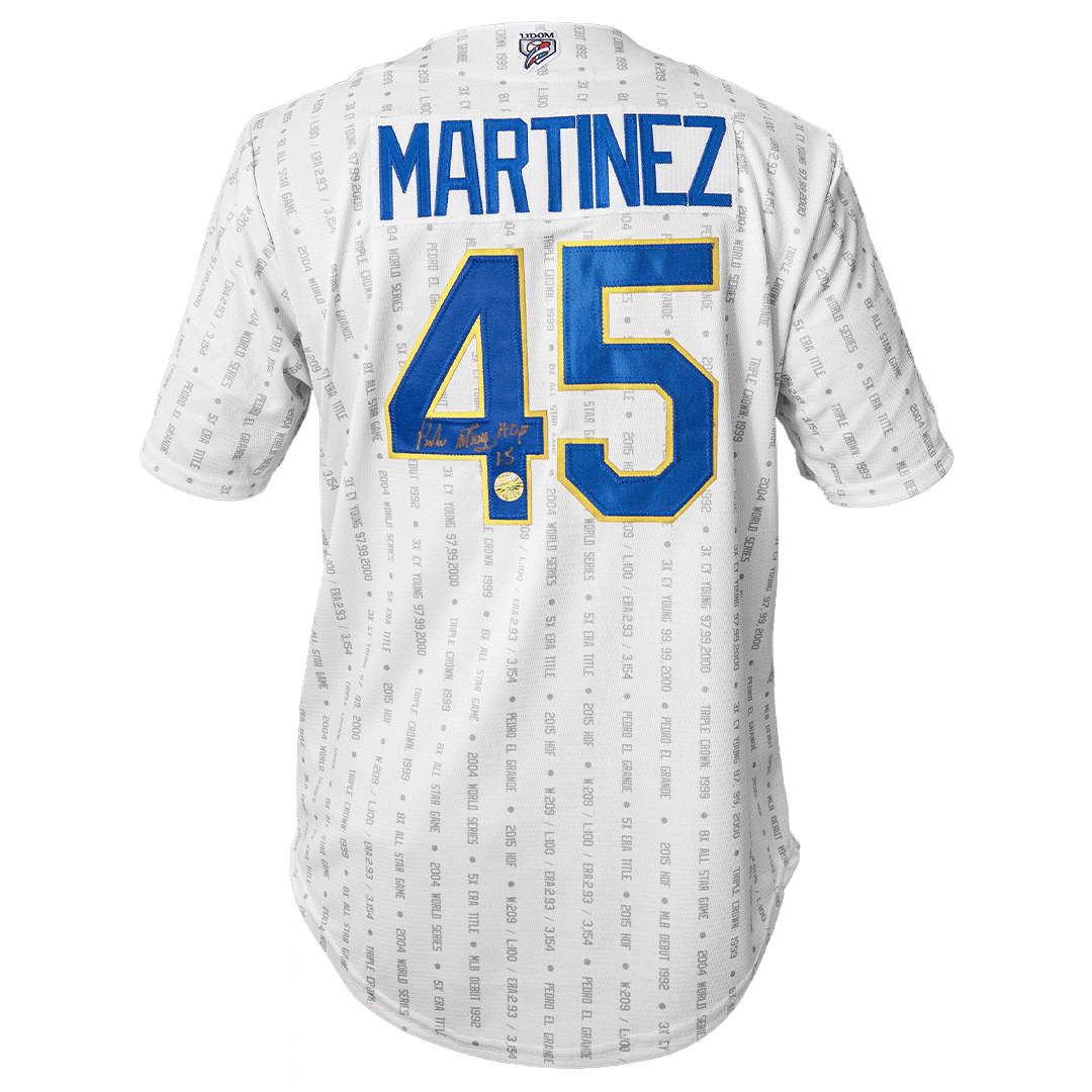 ¡Presentamos una pieza única de colección para cualquier fanático del béisbol! Esta es una camiseta autografiada por el legendario lanzador Pedro Martínez, durante su tiempo con los Tigres del Licey. La camiseta cuenta con el logo icónico de “Tigres” en el frente y “Martínez” y el número #45 en la espalda, así como con la exhibición de todas sus estadísticas de carrera en las Grandes Ligas.